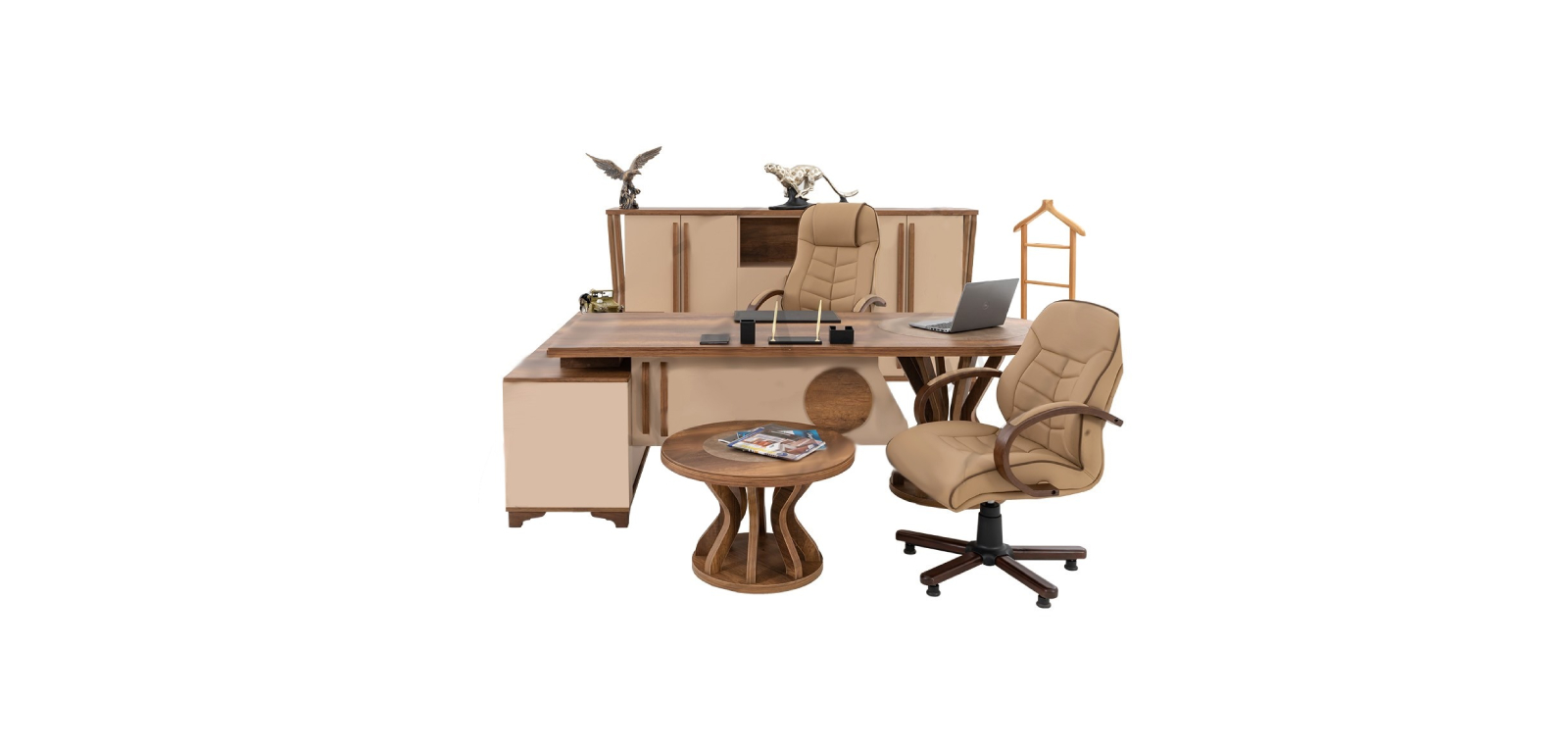 Lüks Karamel Ofis Takımı zarif tasarımı, ve özel detayları ve teknoloji entegrasyonuyla bu takım. İş yerlerini lüks ve konforlu bir atmosfere dönüştürür. Ve içinde çalışanlara gurur veren bir iş ortamı sunar.